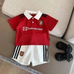 ชุดเซ็ทลุคสปอร์ต เสื้อพร้อมกางเกงครบชุด สีคล้ายกับชุดเหย้าของสโมสรฟุตบอลแมนเชสเตอร์ ยูไนเต็ด ใส่สบายระบายอากาศได้ดี เนื้อผ้าดีไม่ระคายผิว